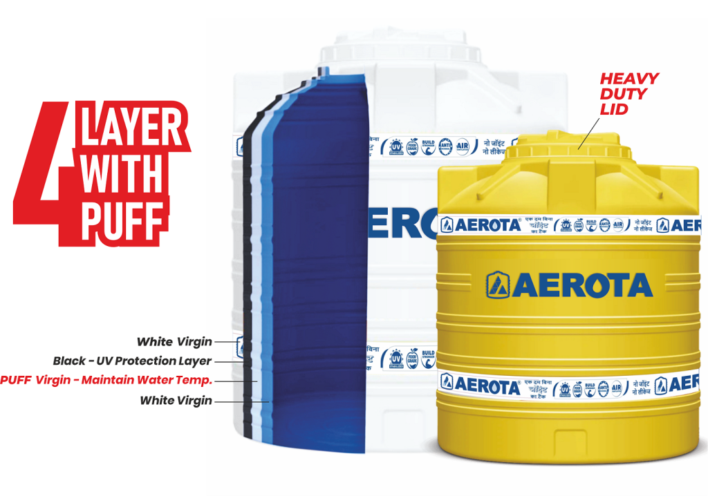 AEROTA offers advanced water storage tanks made from 100% virgin, food-grade materials, combining durability, hygiene, and eco-friendly features. With multi-layer technology, UV resistance, and anti-bacterial protection, our tanks ensure pure, safe water. Certified with ISO 9001:2015, AEROTA guarantees quality and reliability.